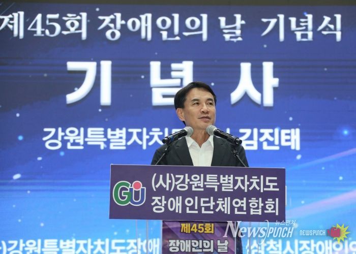 뉴스펀치 김보성 기자 | 강원특별자치도는 9월 3일 삼척실내체육관에서 장애인과 가족, 자원봉사자 등 1,000여 명이 참석한 가운데 '제45회 장애인의 날' 기념식을 개최했다.