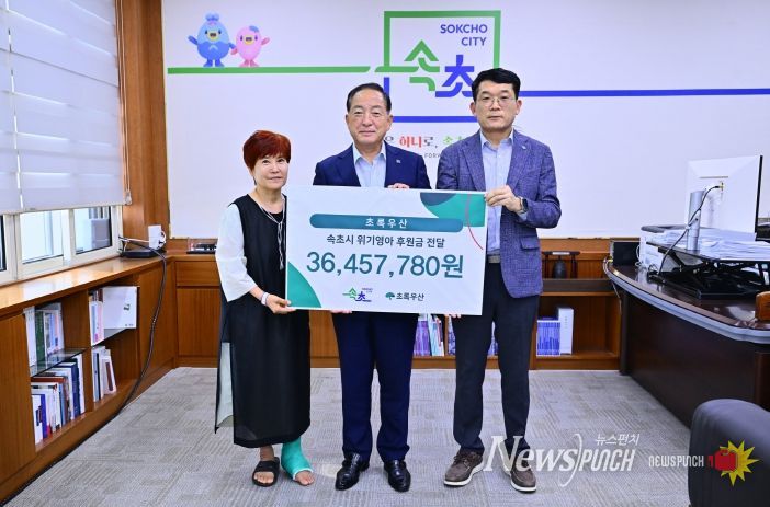 뉴스펀치 김보성 기자 | 속초시는 9월 3일 시청에서 초록우산어린이재단 강원지역본부와 함께 희귀질환 아동 의료비 후원금 전달식을 개최했다. 이번 전달식은 재단이 진행한 모금 캠페인을 통해 마련된 3,600만 원의 후원금을 기반으로 열렸다.