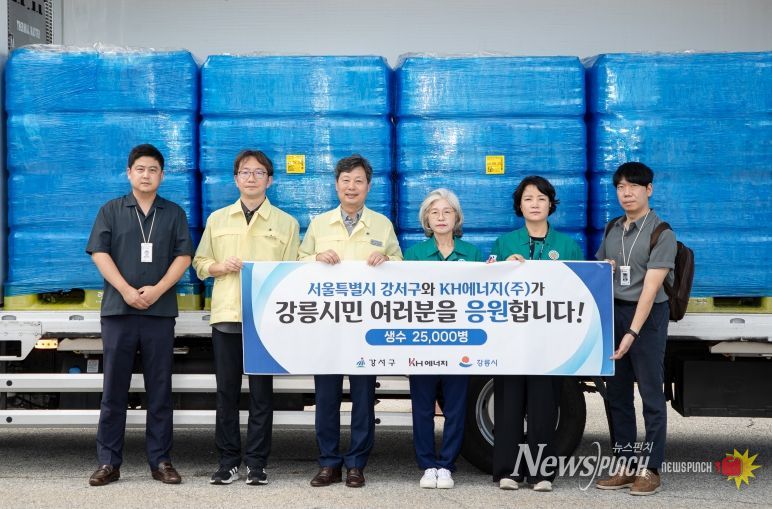 이번 지원은 강서구 행정문화국 김용환 국장을 포함한 5명의 관계자가 직접 강릉시청을 방문해 생수를 전달했으며, 이날 KH에너지도 강서구의 뜻에 동참해 생수(500ml) 20,000병을 함께 기부했다.