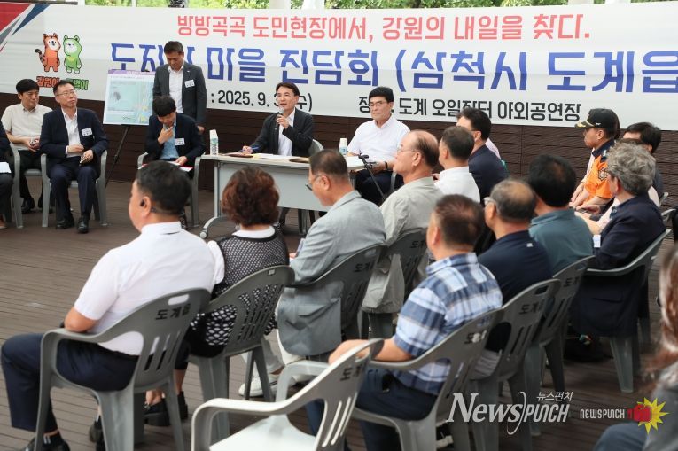 뉴스펀치 김보성 기자 | 김진태 강원특별자치도지사는 9월 3일 삼척시 도계읍에 위치한 조기폐광지역 경제진흥사업 추진 현장을 방문해 향후 사업계획을 점검하고 주민들과 소통하는 시간을 가졌다.