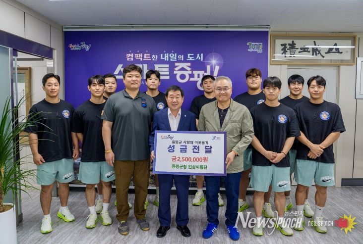 뉴스펀치 김길룡 기자 | 충북 증평군은 증평군청인삼씨름단(감독 연승철)이 4일 군청을 방문해 지역 내 소외계층을 위한 이웃돕기 성금을 전달했다고 밝혔다.