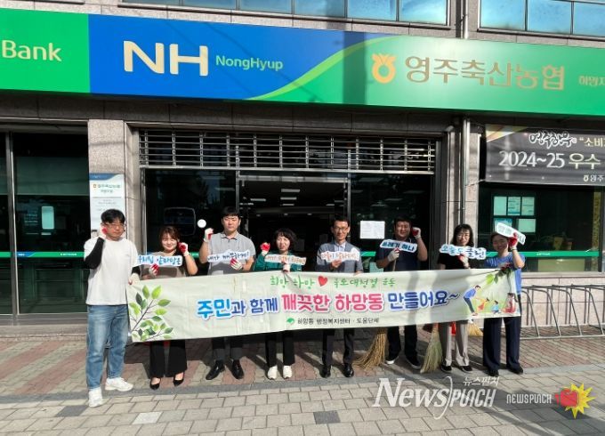 뉴스펀치 김종율 기자 | 영주시 하망동은 지난 4일 하망동 축협 직원들과 함께 동네 환경 정비 활동을 실시하며, ‘앞정운동(앞마당 정리운동)’ 릴레이 캠페인의 첫걸음을 내디뎠다.