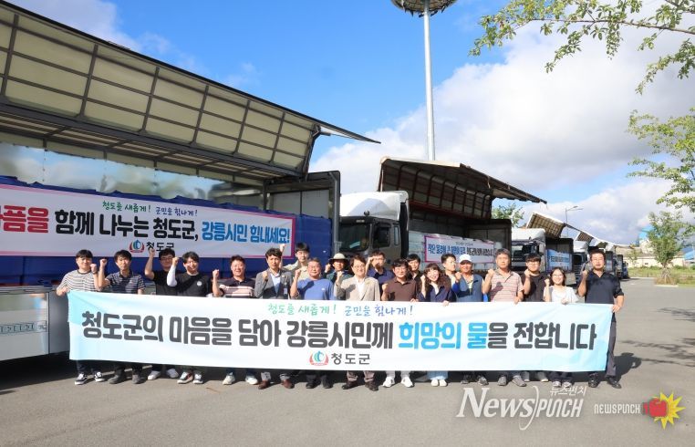 뉴스펀치 김종율 기자 | 청도군은 지난 5일 강릉시의 극심한 가뭄으로 인한 식수난 해소를 위해 생수 70,000병을 긴급 지원했다고 밝혔다. 이번 지원에는 18톤 화물차량 8대가 투입되며, 현지까지 직접 운송이 이루어졌다.