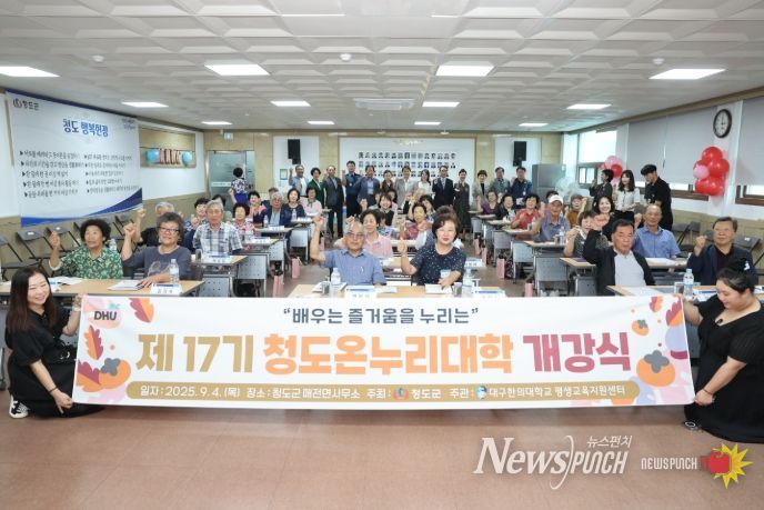 뉴스펀치 김종율 기자 | 청도군은 4일 매전면사무소 회의실에서 ‘제17기 청도온누리대학’ 개강식을 개최하고, 어르신을 위한 평생학습 프로그램을 본격적으로 시작했다.