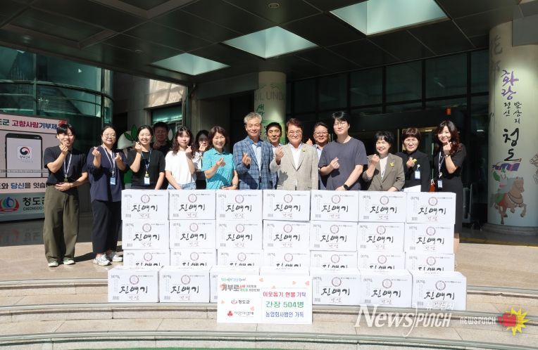 뉴스펀치 김종율 기자 | 청도군은 지난 5일 농업회사법인 가득(대표 이영남)으로부터 간장 504병(500만 원 상당)을 기탁받았다고 밝혔다. 이번 기탁은 지난 1월에 이어 올해 두 번째로 진행된 것으로, 기업이 지역사회와 함께하는 ‘상생의 가치’를 실천한 사례다.