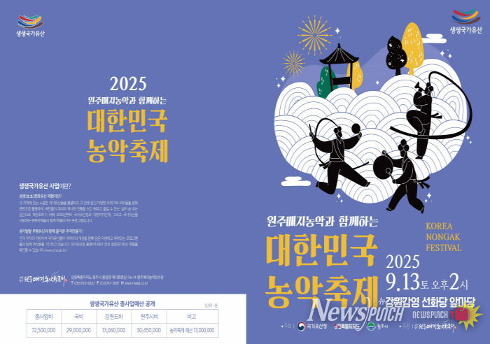 뉴스펀치 김보성 기자 | 원주시역사박물관은 오는 13일 오후 2시 강원감영에서 ‘원주매지농악과 함께하는 대한민국 농악축제’를 진행한다.