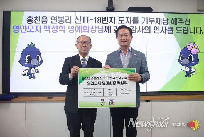 뉴스펀치 김보성 기자 | 영안모자 백성학 명예회장이 홍천읍 연봉리 산11-18번지 일대 3만 평의 토지를 홍천군에 기부했다.