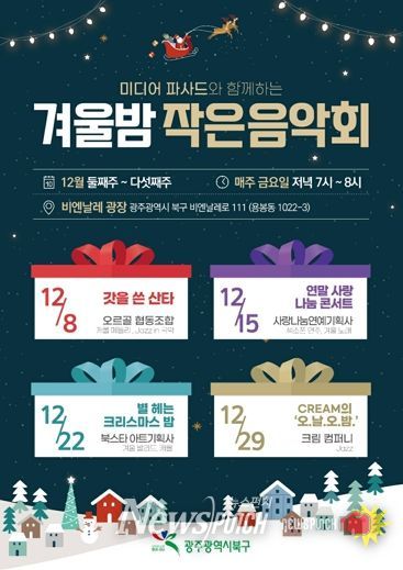 한편 북구는 지난 8일 재즈와 국악이 어우러진 퓨전음악을 소재로 이번 겨울밤 작은음악회 1회차 무대를 진행해 가족 단위 관람객 수백 명이 다녀가는 등 지역민들에게 호응을 얻은 바 있다.