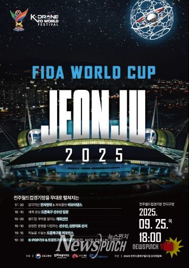 뉴스펀치 김길룡 기자 | 전주시가 오는 25일 개막하는 ‘2025 전주드론축구월드컵(FIDA World Cup Jeonju 2025)’에 참가하는 전세계 드론축구선수단의 안전하고 편안한 체류를 위한 준비를 완료했다.