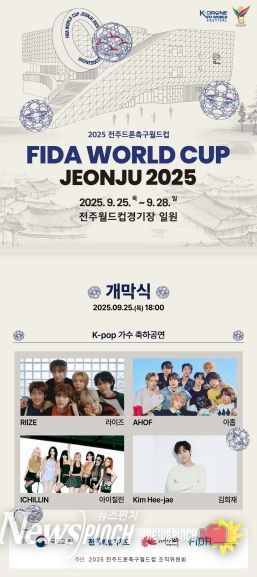 개막식에서는 세계 정상급 선수단의 입장을 시작으로, △개막선언 △선수단·심판대표 선서 △드론축구볼 퍼포먼스가 이어져 대회의 서막을 연다. 이어, 라이즈(RIIZE), 아홉(AHOF), 아이칠린(ICHILLIN’), 김희재 등 인기 가수들이 무대를 꾸미며 축제의 열기를 최고조로 끌어올릴 예정이다.