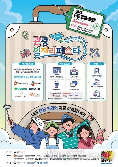 뉴스펀치 김희경 기자 | 문화체육관광부는 한국관광공사, 한국호텔업협회 등 관광 유관 기관 및 단체와 함께 9월 30일부터 10월 1일까지 에이티센터(aT센터, 서울 서초구)에서 ‘2025 관광 일자리페스타’를 개최한다.
