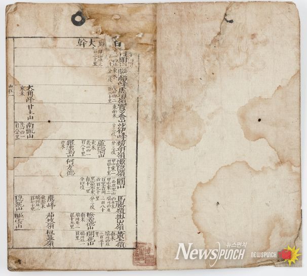 뉴스펀치 김희경 기자 | 산림청은 12월 11일 국립산악박물관 산경표를 비롯하여 역사·생태·경관성이 뛰어난 11개소를 심사위원회를 거쳐 국가 산림문화자산으로 신규 지정했다고 밝혔다.