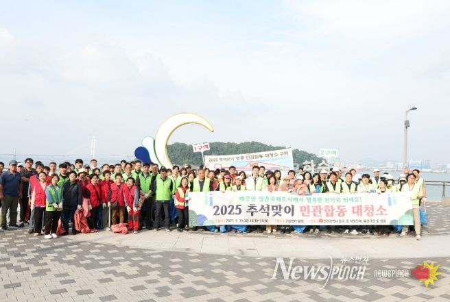 뉴스펀치 탁상훈 기자 | 인천시 중구는 지난 9월 30일 영종국제도시 구읍뱃터 일대에서 ‘2025년 추석맞이 민관합동 대청소’를 실시했다고 밝혔다.