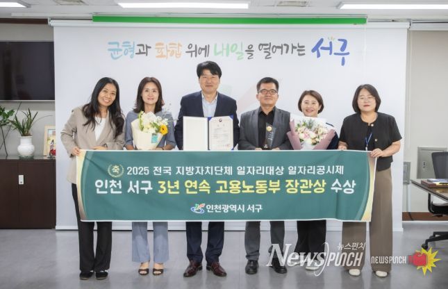 뉴스펀치 탁상훈 기자 | 인천 서구가 고용노동부 ‘전국 지방자치단체 일자리 평가’에서 3년 연속 고용노동부 장관상에 선정됐다.