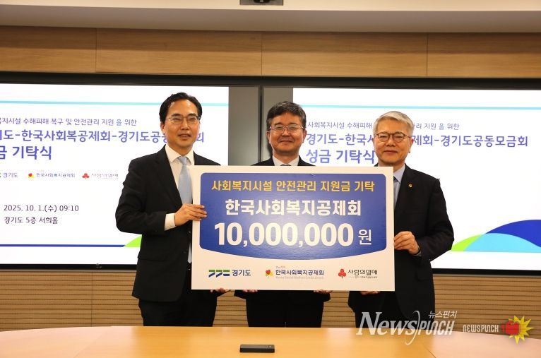 뉴스펀치 탁상훈 기자 | 경기도는 1일 경기도청에서 한국사회복지공제회, 경기도공동모금회와 함께 ‘경기도 사회복지시설 안전관리 지원 성금 기탁식’을 개최했다.