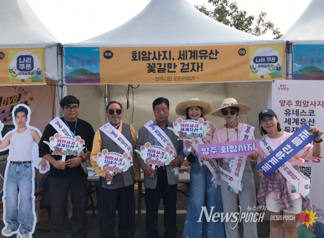 뉴스펀치 탁상훈 기자 | 양주 회암사지 주민협의체가 최근 제7회 양주 천만송이 천일홍 축제에서 회암사지 세계유산 등재 추진을 위한 홍보 활동을 진행했다.