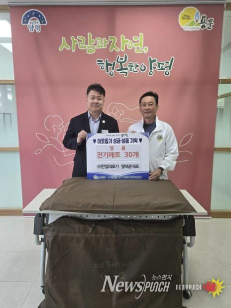뉴스펀치 탁상훈 기자 | 양평군 용문면은 ㈜한일의료기가 관내 취약계층을 위해 600만 원 상당의 전기매트 30개를 기탁했다고 밝혔다.