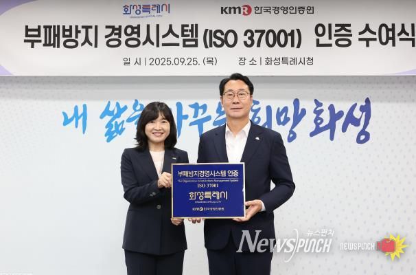 뉴스펀치 탁상훈 기자 | 화성특례시가 국제표준화기구(ISO)에서 제정한 부패방지경영시스템 (ISO37001) 인증을 획득했다.