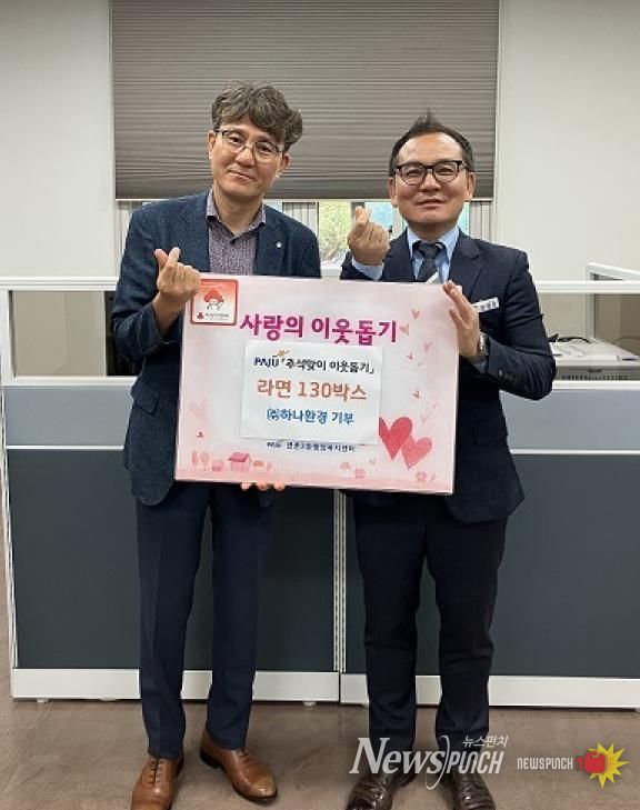 뉴스펀치 탁상훈 기자 | 금촌2동이 추석 명절을 앞두고 ㈜하나환경으로부터 라면 130박스를 기탁 받았다.