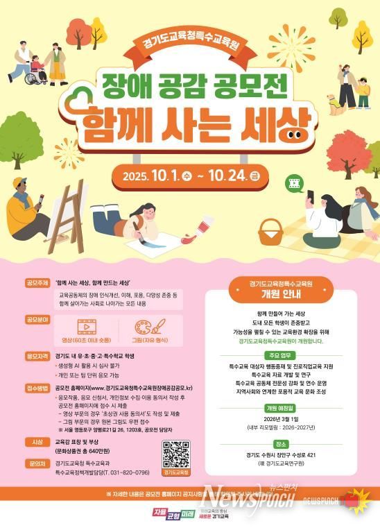 이번 공모전은 2026년 3월을 목표로 개원을 준비 중인 (가칭)경기도교육청특수교육원 설립을 앞두고, 장애 공감 문화 확산과 장애 인식 개선, 도민과 함께 적극 소통하기 위한 취지로 마련했다.