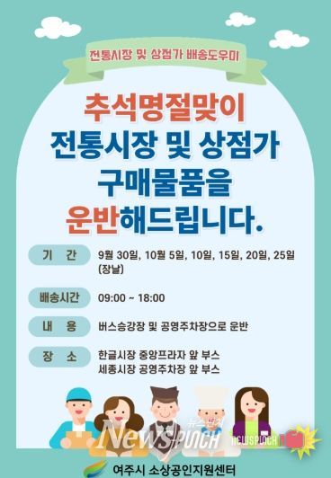 뉴스펀치 탁상훈 기자 | 여주시는 여주시소상공인지원센터 주관으로 다가오는 추석 명절을 맞이하여 전통시장과 상점가를 찾는 시민들의 편의를 돕고 전통시장 활성화를 위해 ‘전통시장 및 상점가 배송 도우미’ 서비스를 운영한다.