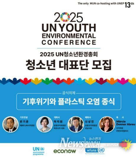 뉴스펀치 탁상훈 기자 | 성남시청소년청년재단 판교유스센터와 환경단체 에코나우는 오는 11월 15일부터 16일까지 이틀간 성남 국립국제교육원에서 열리는 ‘2025 UN청소년환경총회’에 참가할 국내외 청소년 대표단 300명을 10월 13일까지 모집한다. 이번 총회는 성남시청소년청년재단 판교유스센터와 환경단체 에코나우가 공동 주관하며, 반기문 전 UN사무총장과 브라질 대사 등 주요 인사가 참석한다.