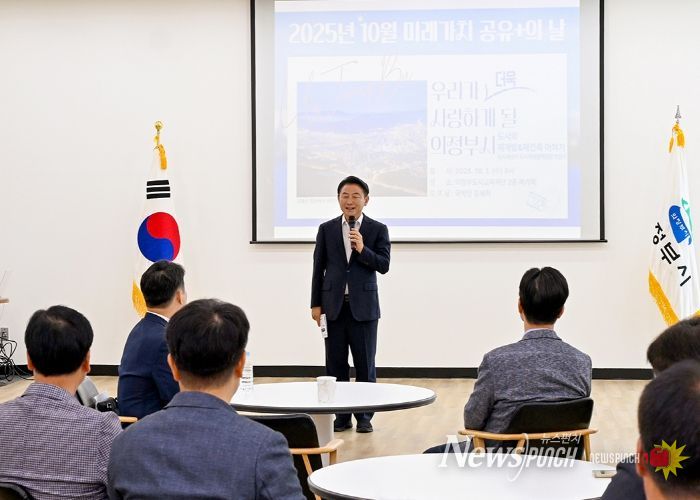 뉴스펀치 탁상훈 기자 | 의정부시는 10월 1일 의정부도시교육재단 2층 북카페에서 시민과 직원 120여 명이 참석한 가운데 ‘2025년 10월 미래가치 공유플러스+의 날’ 행사를 개최했다.