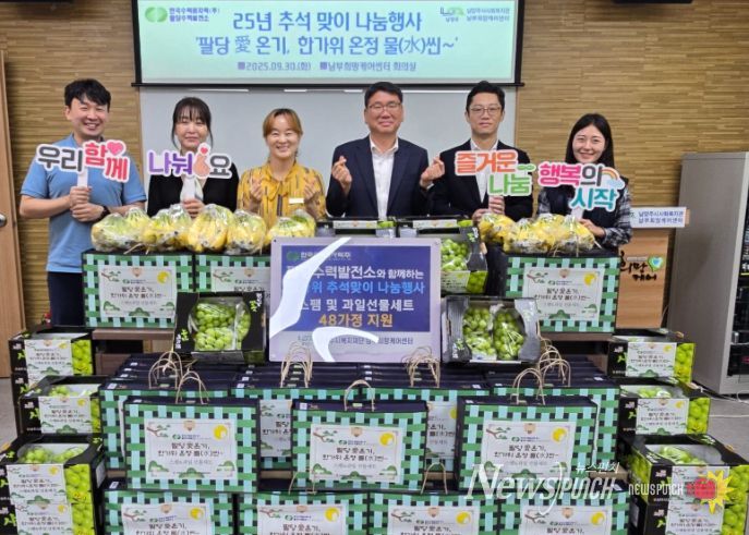 뉴스펀치 탁상훈 기자 | 남양주시는 9월 30일 남부희망케어센터가 한국수력원자력(주)팔당수력발전소의 후원을 받아 ‘팔당愛 온기, 한가위 온정 물(水)씬~’이라는 이름으로 2025년 추석 명절맞이 나눔행사를 진행했다고 밝혔다.