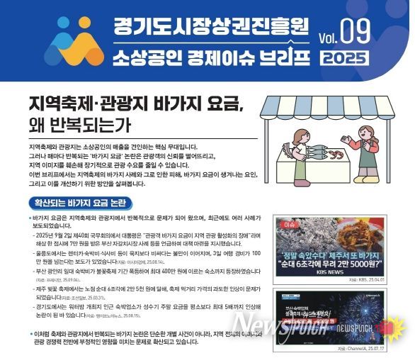 뉴스펀치 탁상훈 기자 | 경기도시장상권진흥원은 지역축제와 관광지에서 반복되는 ‘바가지 요금’ 실태를 분석한 「경기도 소상공인 경제 이슈 브리프 VOL.09」을 30일 발간했다고 밝혔다.