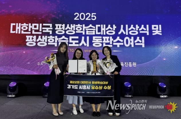 뉴스펀치 탁상훈 기자 | 시흥시는 ‘사람과 지역의 동반자’ 역할을 수행하는 ‘시흥시 학습동아리 지원센터’ 운영 성과를 인정받아, 지난 10월 1일 정부세종컨벤션센터에서 열린 ‘제22회 대한민국 평생학습대상’ 시상식에서 우수상을 받았다.