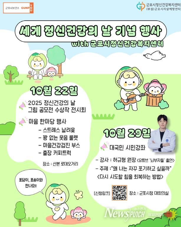 뉴스펀치 탁상훈 기자 | 군포시정신건강복지센터 부설 군포시자살예방센터는 오는 10월 10일 세계 정신건강의 날을 맞이해 정신건강을 위한 다양한 행사를 개최할 예정이다.