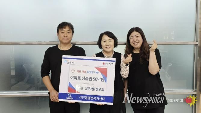 뉴스펀치 탁상훈 기자 | 포천시는 지난 30일, 선단동 설운2통 청년회가 지역 내 어려운 이웃을 돕기 위해 50만 원 상당의 상품권을 선단동 행정복지센터에 기부했다고 밝혔다.