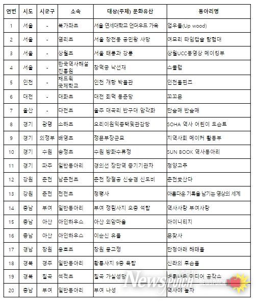 올해로 두 번째를 맞이하는 이번 공모전은 3명 이상의 초등학생과 1명의 지도자로 구성된 동아리(단체)를 대상으로 하여 지난 5월 20곳의 동아리를 선정했으며, 이렇게 선정된 동아리는 각자 소개하고 싶은 문화유산을 선정해 6월부터 11월까지 기획과 출연, 촬영과 편집 등 해당 문화유산을 소개하는 영상을 직접 제작했다.