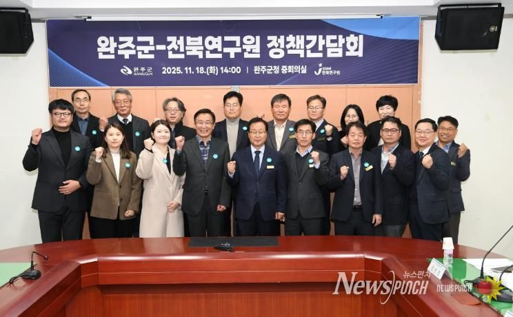 뉴스펀치 정홍균 기자 | 완주군과 전북 싱크탱크인 전북연구원이 18일 오후 완주군청에서 유 군수와 장 원장대행을 포함한 주요 관계자 20여 명이 참석한 가운데 ‘완주군-전북연구원 정책간담회’를 열었다.