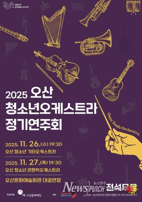 뉴스펀치 김길룡 기자 | 오산문화재단이 주최하고 오산시가 후원하는 ‘2025 오산 청소년 오케스트라 정기연주회’가 오는 11월 26일부터 27일까지 오산문화예술회관 대공연장에서 이틀간 개최된다. 공연은 전석 무료로 시민 누구나 관람할 수 있다.
