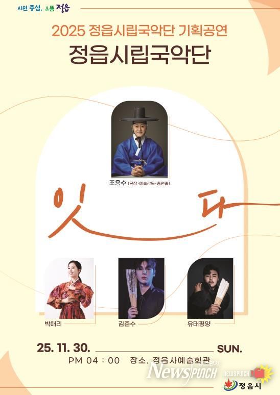 뉴스펀치 김길룡 기자 | 정읍시립국악단이 오는 30일 오후 4시 정읍사예술회관에서 기획공연 ‘잇다’를 선보인다.
