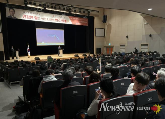뉴스펀치 김길룡 기자 | 단양문화예술회관에서 열린 명사초청 건강강좌가 지난 19일 김문근 단양군수를 비롯해 관내 학생, 학부모, 군민 등 450여 명이 참석한 가운데 성황리에 마무리됐다.