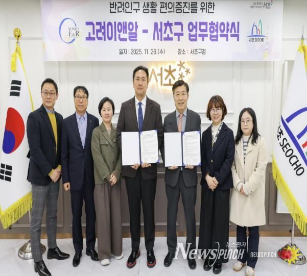 뉴스펀치 김완규 기자 | 서울 서초구는 26일, 반려인구의 지속적 증가에 대응해 반려인의 생활편의를 높이고 쾌적한 공원 환경을 조성하기 위해 환경관리 전문업체 ㈜고려이앤알과 '반려견 분변수거함 확대 설치 및 관리에 관한 업무협약(MOU)'을 체결했다고 밝혔다.