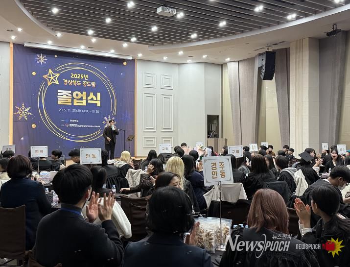 뉴스펀치 김길룡 기자 | 안동시학교밖청소년지원센터이 2025년 11월 25일 안동 그랜드호텔에서 개최된 ‘2025년 경상북도 꿈드림 졸업식’에서 관내 학교 밖 청소년들의 졸업을 축하했다.
