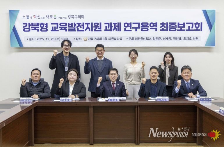 뉴스펀치 김완규 기자 | 강북구의회 의원연구단체인 ‘강북형 교육발전지원 연구회’ (대표의원 허광행)는 지난 11월 26일 의회 3층 의원회의실에서 최종보고회를 열었다.