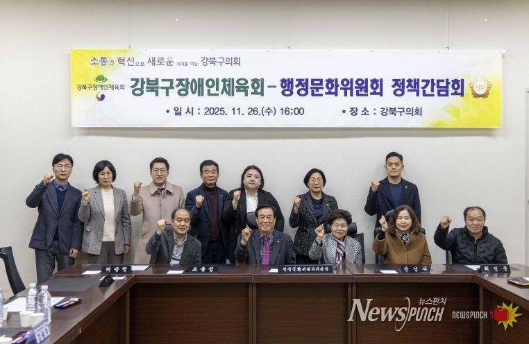 뉴스펀치 김완규 기자 | 강북구의회 행정문화위원회(위원장 곽인혜)는 지난 11월 26일 의회 3층 의원회의실에서 강북구장애인체육회와 정책 간담회를 진행했다.