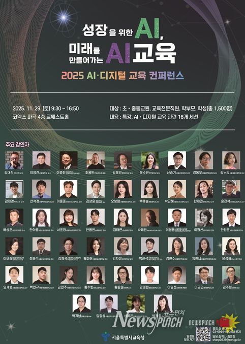 뉴스펀치 김완규 기자 | 서울특별시교육청(교육감 정근식)은 AI 시대 학습자의 성장을 체계적으로 지원하고, 공교육이 나아가야 할 미래교육의 방향을 모색하기 위해 '2025 AI·디지털 교육 컨퍼런스'를 11월 29일 마곡 코엑스에서 개최한다.