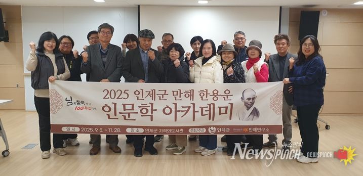 뉴스펀치 김길룡 기자 | ‘님의 침묵’ 탈고 100주년을 기념해 운영된 만해 한용운 인문학 아카데미 제1기가 수료생 20명을 배출하며 교육과정을 성공적으로 마무리했다. 수료식은 지난 11월 28일 인제기적의도서관 사랑채에서 개최됐다.