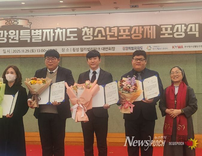 뉴스펀치 김길룡 기자 | 정선군이 설립하고 한국청소년연맹이 수탁 운영하는 신동 다함께돌봄센터는 2025년 11월 29일 횡성 웰리힐리파크에서 열린‘강원특별자치도 청소년포상제 포상식’에서 2025년 첫걸음 청소년자기도전포상제 우수활동기관으로 선정돼 한국청소년활동진흥원 이사장상을 수상하고 소속 청소년 23명이 인증서를 수여 받았다.