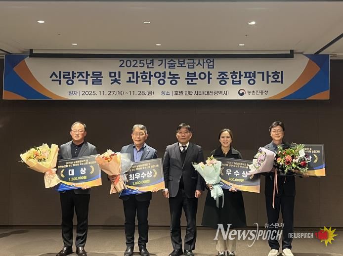 뉴스펀치 김길룡 기자 | 원주시농업기술센터는 농촌진흥청이 주최한 ‘2025년 농업환경보전 및 안전농산물 생산 활성화 우수사례 경진대회’에서 우수상을 수상했다.