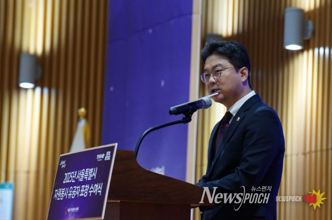 뉴스펀치 김완규 기자 | 서울특별시의회 행정자치위원회 장태용 위원장(강동구 제4선거구)은 11월 28일 서울시청 본관 8층 다목적홀에서 열린 '2025년 자원봉사 유공자 표창 수여식'에 참석해 유공자 표창 및 우수자원봉사자 인증패를 수여하고, 자원봉사자와 시민사회 관계자들을 격려했다.