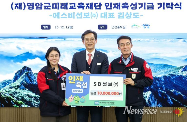뉴스펀치 김길룡 기자 | SB선보㈜ 김상도 대표이사가 1일 영암군미래교육재단에 인재육성 장학금 1,000만원을 기탁했다.