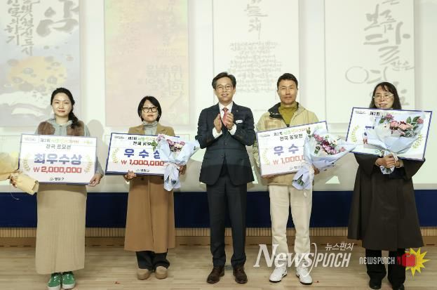 뉴스펀치 김길룡 기자 | 영암군이 12/1일 군청에서 ‘2025년 제2회 영암 인문캘리그래피 전국 공모전’ 시상식을 열고, 15개 수상작에 시상했다.