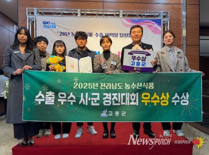 뉴스펀치 김길룡 기자 | 고흥군이 전라남도가 주관한 ‘2025년 전라남도 농수산식품 수출 우수 시군 경진대회’에서 ‘우수상’을 차지하며, 수출 강군(强郡)으로서의 면모를 다시 한번 확인했다.