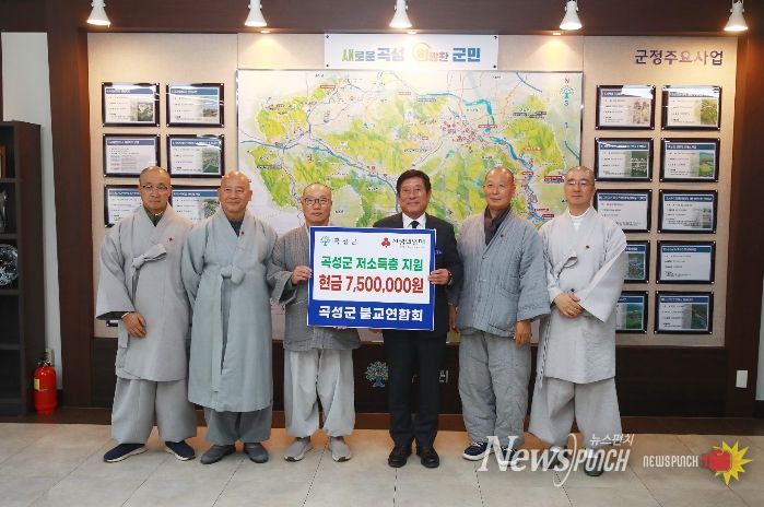 뉴스펀치 김길룡 기자 | 전남 곡성군은 지난 1일 곡성 불교연합회(도림사·서산사·천태암·태안사·성륜사·수도암·관음사)와 여수 향일암이 협력하여 곡성군 취약계층을 위한 성금 750만 원을 기부했다고 2일 전했다.